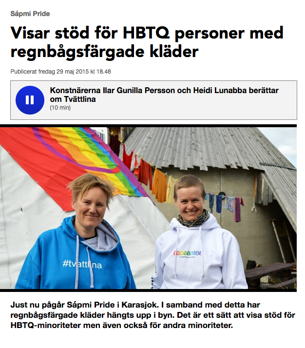 Radioinslag Sveriges Radio om Tvättlina på Sapmi Pride 2015